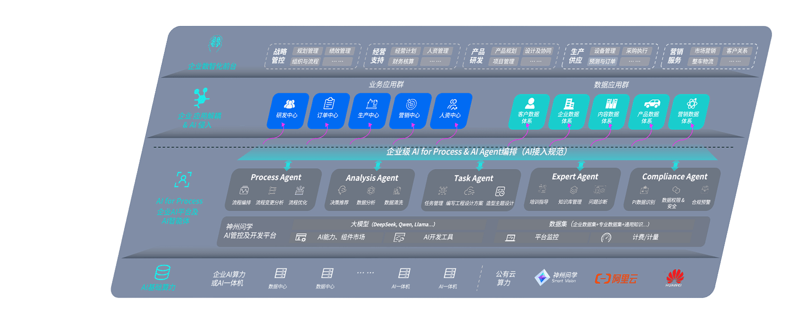 金世豪问学智车解决方案是一套基于AI技术的汽车行业智能化系统,,,,覆盖从底层算力到顶层AI应用的全栈方案。。方案由算力层、、、模型层和应用层组成:算力层,,,,方案支持多种一体机配置,,,,具备云端灵活部署、、多云适配以及动态优化计算资源的能力;模型层,,金世豪问学平台版提供了企业级AI应用一站式构建与管理平台,,,,支持基于后训练强化技术的汽车企业专属模型的训练、、、、评测和运营;应用层,,,,金世豪问学DeepSeek版提供包括超级员工、、智能招采、、智能营销、、、、智能客服、、、、AI for BI等一系列解决方案,,,,可助力汽车行业实现数字化转型,,,让管理更智能、、、、响应更敏捷。。